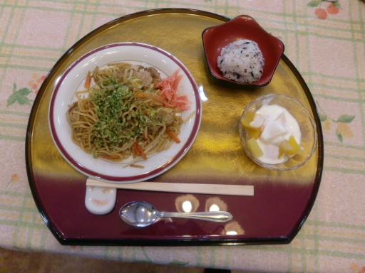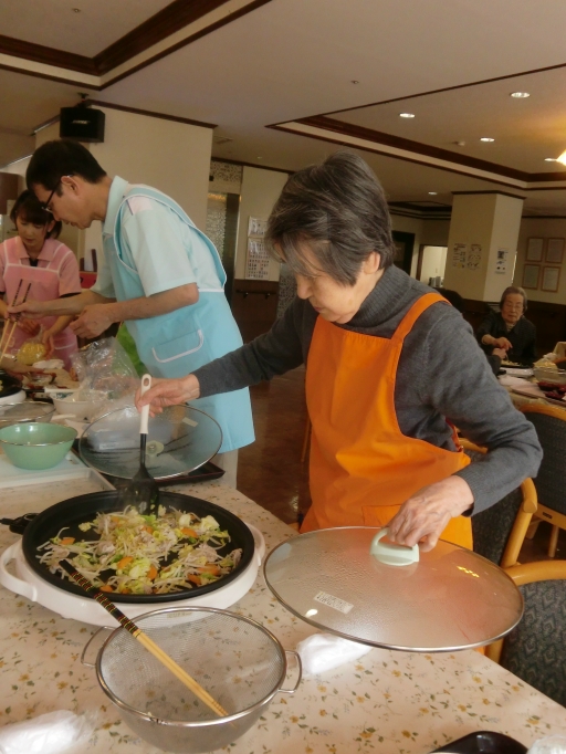 仕上がった焼きそばは、ご入居者様の手によって美味しく盛り付けられました。