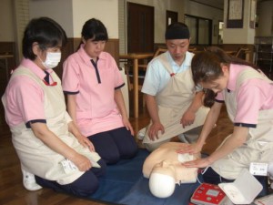 本日は救急救命講習で人工呼吸 法やAEDの取り扱いを勉強 しました。いざ!の時のために 真剣に取り組みましたよ!