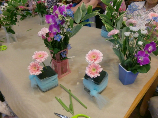 2013.06.13 シルバービレッジ日野 『フラワーアレンジメント❀』 6月11日 午後のレクリエーションは 講師の先生による、フラワーアレンジメント教室を行いました! 今回のお花は… スプレーバラ スプレーカーネーション ガーベラ ナルコラン スプレー菊 デルフィニウム でした!! どの作品も、とても綺麗でした!! 皆様、出来上がりにはとても満足した表情をされていました(*^_^*) Witer: 近藤 ひかる