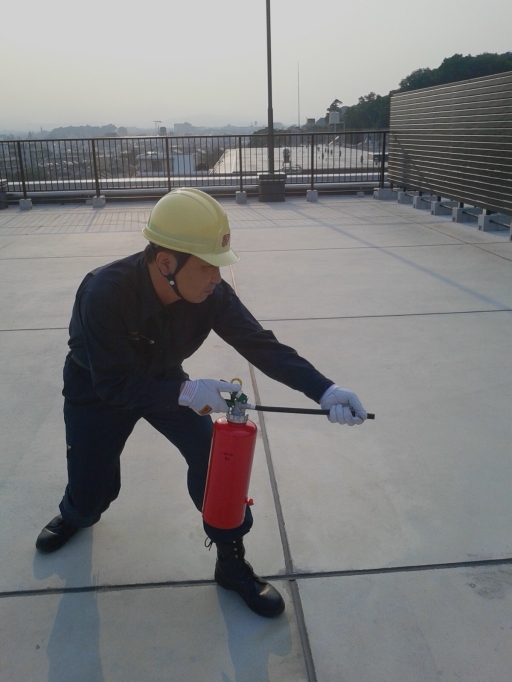 熱中症にも負けず日々練習中です。7月18日大会に向けて、頑張ってます。消火器搬送、安全ピンよし、放射。