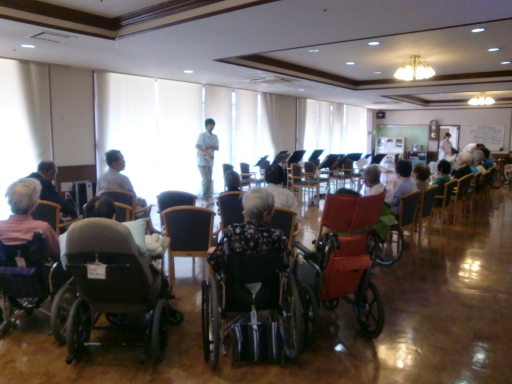 美空ひばりさんの、「川の流れのように」では入居者様も歌いながら一緒に参加が出来るようになっており、