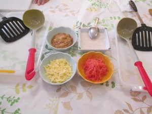 2013.11.28 シルバービレッジ日野東館 味自慢! 本日(11月28日)は月に1回の「料理教室」の日! 今回のメニューは「牛丼」です。 トッピングは玉子、大根おろしにチーズにキムチ。 お好みの味に仕上げて・・・いっただきま~す! writer:林 健二