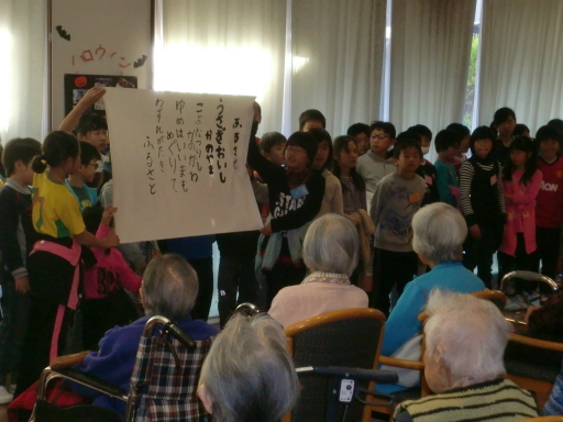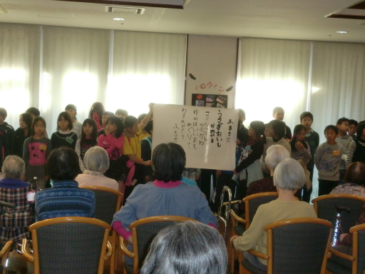 そして、小学生の皆様、入居者様と全員で ふるさと を歌い、