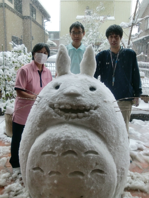 2014.02.10 シルバービレッジ日野 !! 大雪警報に負けるな !! !! 大雪警報に負けるな !! 2月8日 全国的に大雪となり、関東も大雪警報が発令されました。 しかしそんな中、「大雪に負けるな!」とトトロが激励にきてくれました。 みなさんトトロに癒され、寒い1日でしたが、ほんわかしたティータイムになりました。 風間 香織