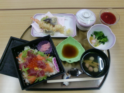本日は、海鮮ちらし、揚げたての天ぷらをご用意♪