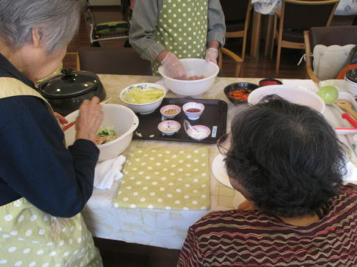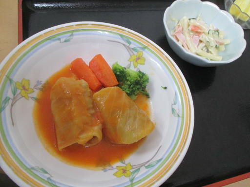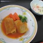 2014.04.24 シルバービレッジ日野東館 ロールキャベツ 本日(4月24日)の料理教室は 春キャベツが出回り始めたので ロールキャベツを作りました。 手際よく食材をきざみキャベツで くるくる・・・じっくり煮込んで出来上がり! いただきま~す! writer:林 健二