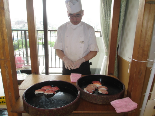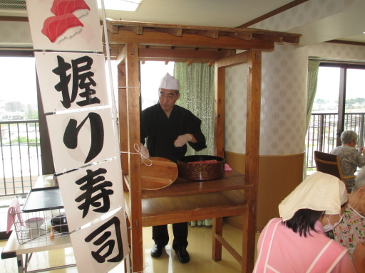 2014.05.14 シルバービレッジ八王子 ー 屋台での握り寿司 - ー 屋台での握り寿司 - 本日は、4・5階の握り寿司をご提供させて戴きました。 (ちなみに、先週は1~3階の方にご提供させて戴きました) やはり、マグロが1番人気でしたねー。 厨房のアーバン社さんも、全面協力戴き、雰囲気も良かったと思います。 またやってほしい!とのお言葉があり、さらに入居者様に喜んで戴ける 企画を考えますので、皆様お待ちくださいませ。 writer: 高水直人