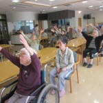 2014.05.17 シルバービレッジ八王子西 今日も元気にトリム体操 5月13日火曜日午後より トリム体操を行いました。「手を挙げて~しっかり伸びます~」「1.2.3 」今日は、いつもの体操の後、美空ひばりの「真っ赤な太陽」の踊りを皆で練習しました。これは 今年の納涼祭で 入居者の皆様が 踊ります。皆様 お楽しみに! 介護部 宍戸房子