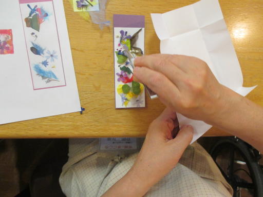 2014.06.08 シルバービレッジ日野東館 押し花の栞 本日午前中は押し花教室でした。 色とりどりの押し花で オリジナルの栞をつくりました。 そぼ降る雨・・・静かな時間 いいものです。 writer:柴谷 秀孝