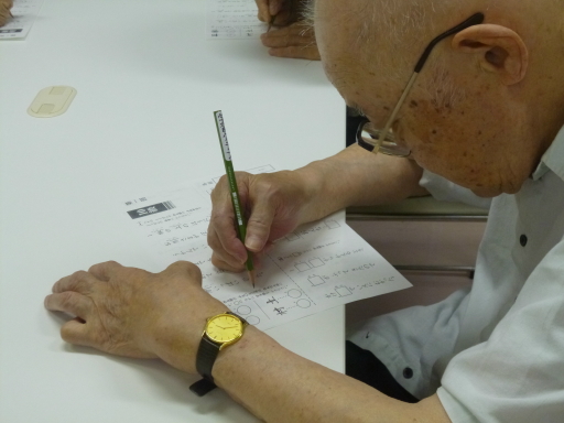 2014.07.04 シルバービレッジ八王子 -学習クラブ- -学習クラブ- 7月2日(水)から、リハビリ室にて学習クラブを開始しました☆!! 内容は、漢字(漢検の問題)・計算・歴史です(^^) 今回は漢字・計算(かけ算・ひき算)の問題を解いて頂きました◎ 遊びり職員が先生となり、皆様と一緒に答え合わせをし、凄く盛り上がりました(>v<)♡ 皆様の何とも言えない真剣な表情と緊張感は、とても新鮮でした♫** 遊びり 佐々木