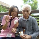 2014.07.24 シルバービレッジ八王子 -軽食会(アイス企画第2弾)- -軽食会(アイス企画第2弾)- 7月17日(木)に道の駅に行き、ソフトクリームを 召し上がって頂きました\(^o^)/ 八王子では有名なソフトクリームです☆! 夏にはもってこいの、冷たくて甘~いソフトクリームをペロリッ♫(*^^)v その後に道の駅の売り場を見て回り、好きな物を買われた入居者の方も いらっしゃいました^m^ 遊びり☆佐々木