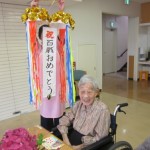 久寿玉を割って頂き 皆で盛大にお祝いをしました。長寿の秘訣を伺うと「何もしないのに長生きしちゃった。ワッハッハ!」と笑っておられました。