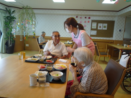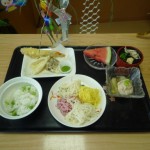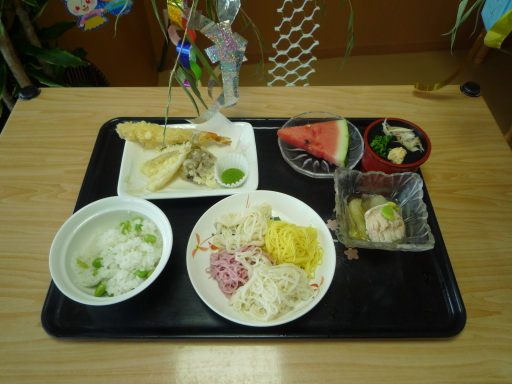 7月のスペシャルランチは、三色そうめんと天ぷらを召し上がっていただきました。