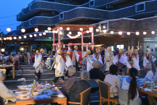 2014.08.08 シルバービレッジ日野 『2016・納涼祭』 『2016・納涼祭』 今年も暑い夏をむかえました。 恒例の納涼祭です。一年の中でも最大の行事になります。 ここ数年雨模様で今年も不安でしたが、当日は夏本番の天候で盛り上がりも最高でした。 職員総出での会場設営から料理作り、飲み物等も準備万端で夕方よりはじまりました。 入居者及びご家族の皆様、近隣の皆様を迎えカラオケあり職員の踊りや近隣の皆様との 盆踊り等楽しい一夏を過ごしていただけたと思います。 その場面の一部しかご覧いただけないのが残念です。 writer: 倉田知章