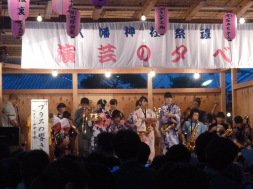2014.08.18 シルバービレッジ八王子 ー 八幡神社祭りに行ってきました ② - ー 八幡神社祭りに行ってきました ② - 焼きそば、たこ焼き、焼き鳥、かき氷など、どれも 量が多くて、いやーお腹いっぱいですねー。 当日は、ひよどり中学の生徒さんが、浴衣姿で数曲演奏して いました。それにしても、雨が降っていないために、 非常に多くの人たちが来ていました。大和田町会の会長さんから ビールや、食べ物もサービスして戴き、有難うございました。 来年もまた、お邪魔させていただきます。 writr: 高水