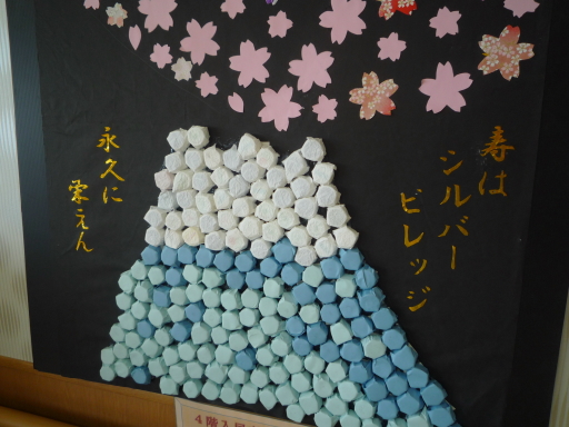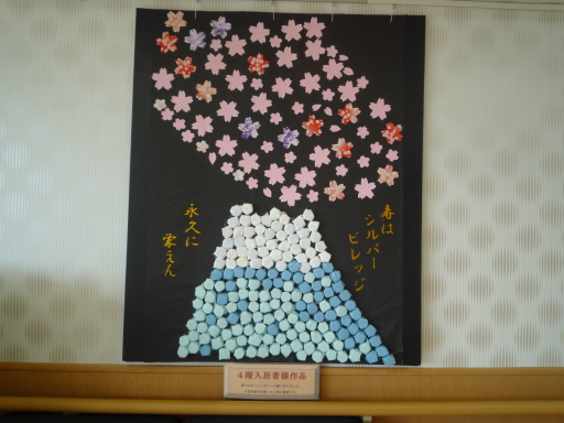 2014.08.03 シルバービレッジ八王子 今回の創作レクは、大作でした。 今回の創作レクは、大作でした。 4階の入居者様による「壁飾り」です。 ペットボトルのふたを加工して富士山を作りました。 詩は、小唄教室で活躍されておられる、御入居者様の作詞です。 素晴らしいですね~ 施設4階に展示していますよ。 2グループ 山上 恭一