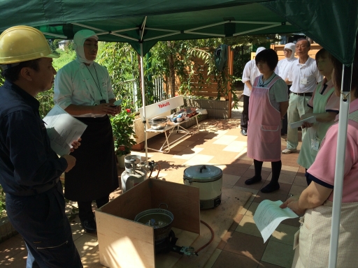 2014.09.25 シルバービレッジ八王子西 八王子西にて防災訓練実施 防災月間の月のイベントとして、 防災訓練としていつもと違った内容で楽しみました、 午前中は炊き出し訓練。 夜間想定で非常災害時、ヘルパーだけで 最低限の食事提供を行うべく、「ごはん」「味噌汁」を30人前作ってみました。 厨房のアーバン社にもご教授頂き、おいしく作ることが出来ました。 午後は消火訓練。 訓練用消火器にて、取扱いを職員とご入居者にも体験して頂きました。 皆さん、非常に楽しんで「面白い面白い」と、、、 知っていただくことが目的なので、良しとしますか! writer: 田中 昇