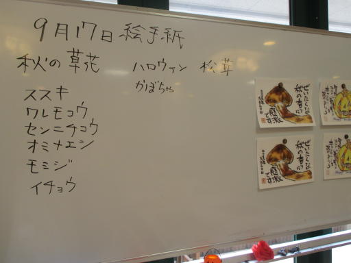 「秋の草花」「ハロウィンかぼちゃ」「松茸」を描きました。
