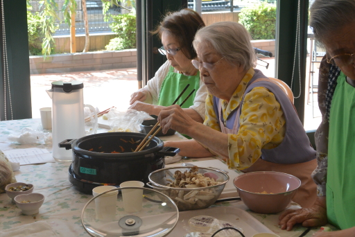 2014.10.09 シルバービレッジ日野 『料理教室』 『料理教室』 今回の料理教室は、今の季節にピッタリの 【きのこたっぷり混ぜご飯と肉じゃが】です!! 皆さんそれぞれにしめじ、まいたけ、れりんぎ、その他たくさんの 具材を切り、楽しく笑顔で料理されておりました。 出来上がった料理は皆さんの好みの味付けで、とても美味しかったです。 次回の料理教室も楽しみですね。 writer: 倉田 知章