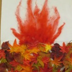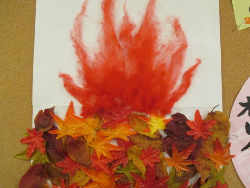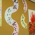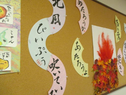 2014.11.21 シルバービレッジ日野東館 たき火 今回の書道教室は童謡唱歌の「たき火」の歌詞を 短冊に書きました。そして真ん中には本物の落ち葉を アレンジした落ち葉焚きが・・・暖かそうです。 writer: 柴谷 秀孝