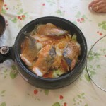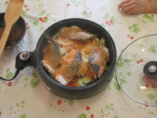 鮭と野菜を鉄板で焼いて酒でといたお味噌に