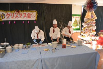 2014.12.21 シルバービレッジ日野 クリスマス会を開催いたしました。 クリスマス会を行ないました!(^^)! 今回の昼食では、皆様の目の前で調理し、出来立てをお出し しました! 午後には皆様とご一緒に合唱をし、職員のハンドベル演奏を 聞きながらケーキを召し上がられました~( ^^) _旦~~ writer:介護部 冨樫