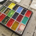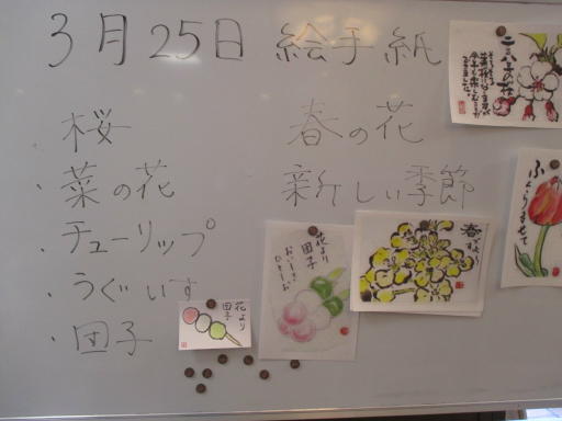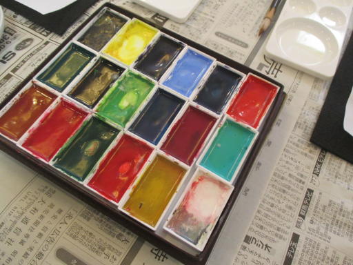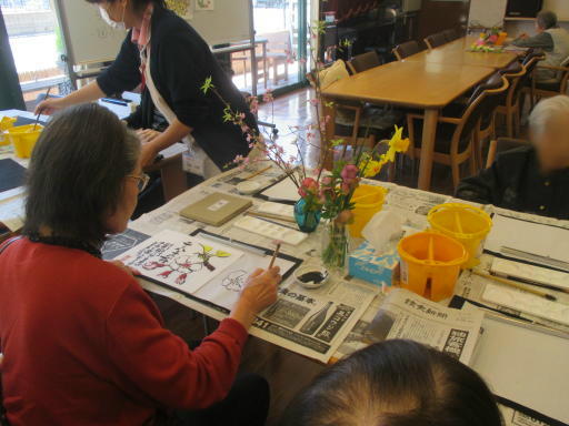 2015.03.25 シルバービレッジ日野東館 色彩 今日の絵手紙教室は春の花を中心に色々な 題材に挑戦しました。パレットをみると 使い込んであり、皆様の過去の力作の 跡がうかがえます。 writer: 林 健二