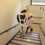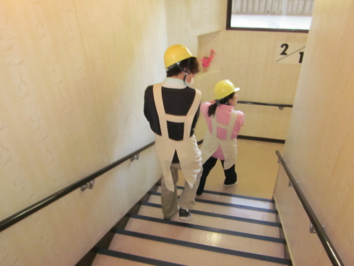 夜勤者2名と遅番事務員1名での避難誘導から、初期消火、炊き出し訓練。