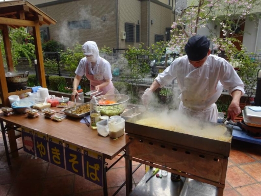2015.04.13 シルバービレッジ日野 さくら祭りを行ないました(^u^) さくら祭りを行ないました(^u^) 外で行なう予定でしたが、生憎この日は気温が低く、ご入居者に 負担をかけてしまうので、施設内での開催となりました! お花見弁当の他に、もつ煮、豚汁、焼きそば などをご用意しました。 焼きそばはテラスで焼いて、出来立てをお配りしました(*^_^*) 食事を堪能しながら、ボランティアさんの踊りや、エントランスでの野立を 楽しみました(*^^)v♪ writer:介護部 冨樫