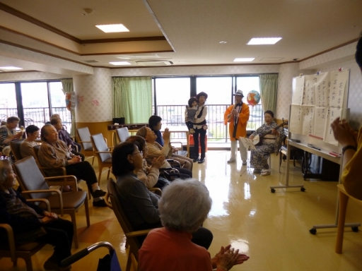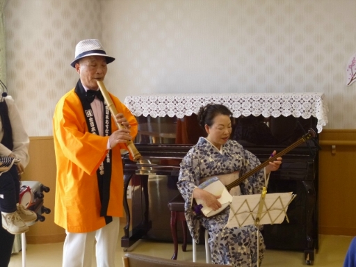 2015.04.22 シルバービレッジ八王子 キラキラ体操 ―キラキラ体操― 4月18日(土)キラキラ体操開催\(^o^)/ 今回は、先生方による尺八と三味線の演奏を披露して頂きました。 他にも、八王子ジローさん・八王子ハナコさんによる腹話術 ご入居者の方に大人気のキンタ君とアイちゃんが来園してくれました(*^_^*) 演奏に合わせて歌ったり、腹話術を見て笑ったりと とても楽しいひと時を過ごして頂けました♪♪ writer: 遊びり☆佐々木 美月