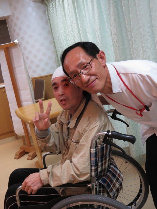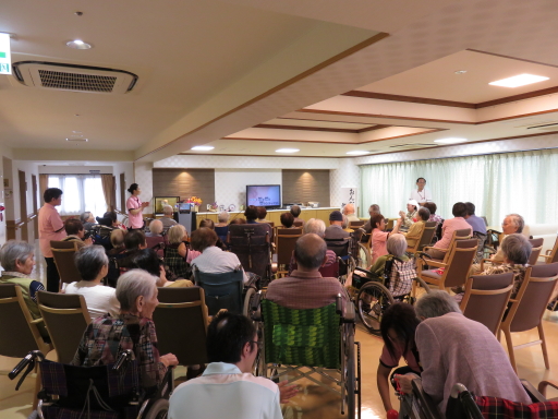 今回は「父の日」と言うとこで、カラオケを 皆様に歌っていただきました。 施設からは黄色いバラをプレゼントです。