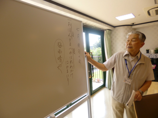 2015.07.11 シルバービレッジ八王子 ―俳句― ―俳句― 7月10日(金)ボランティア講師の狩野先生に来て頂き、 1Fホールで俳句の会が開催されました(^^) ご入居者の方々は先生のお話しを熱心に聴いておられ、 とても素敵な俳句を作っておられました☆ writer: 遊びりテーション課 佐々木美月