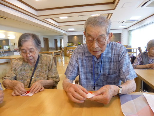 本日、7月13日(月)のボランティアレクリエーションは折り紙でした(^^)