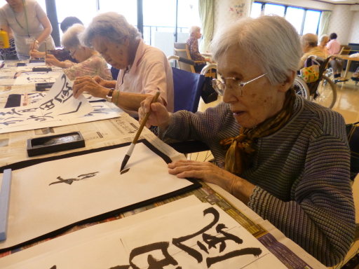 2015.07.03 シルバービレッジ八王子 ー 書道教室 - ー 書道教室 - 本日は、書道を行いました。 書道は、真っ白な半紙に、その筆でもって、書く、という まさしく、その時の心が反映されるものと言われております。 明鏡止水な心で、一心不乱に。 人生の大先輩である、ご入居者の方だからこそ、なんですよねー。 writer: 高水 直人