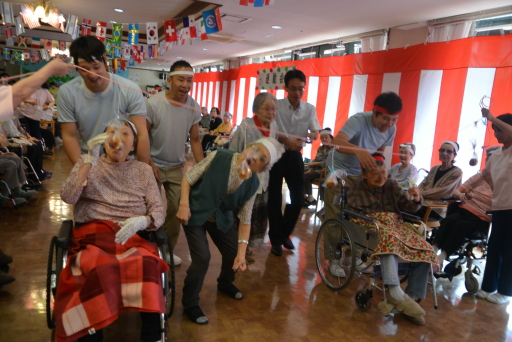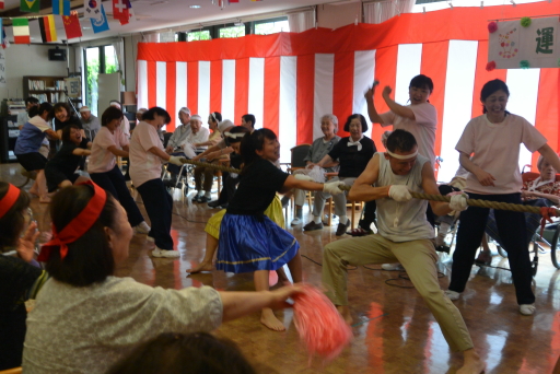 2015.07.01 シルバービレッジ日野 日野運動会 『運動会だよ!!』 本日は毎年恒例となりました運動会が行われました。 入居者の皆様や、職員が紅白に分れて熱戦をくりひろげられました。 パンくい競争やマシュマロ探しで顔が白くなってしまったり綱引きも行われました。 又、紅白それぞれ応援合戦も行われ大いに盛り上がり、楽しい一時を皆さんで過ごして頂きました。 来年も楽しい運動会にしたいと思いますので期待していてくださいね。 writer: 倉田 知章