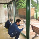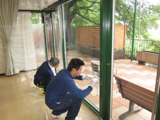 2015.07.04 シルバービレッジ八王子西 雨にも負けず 雨にも負けず 風にも負けず 夏の暑さには、 負けそうなので断熱工事中・・・ 今年の夏に向けて南側の直射日光のあたる窓を断熱加工しております。 ご近所の業者様に依頼をして、最大で8℃断熱できる塗膜を加工してもらいました。 防虫効果や紫外線カットの効果もあり、窓側に席のあるご入居者の日焼け防止や熱中症の対策にも一役買ってくれそうです。 writer: 田中 昇