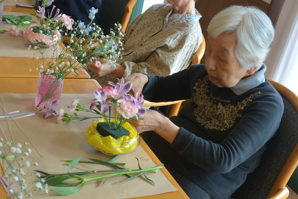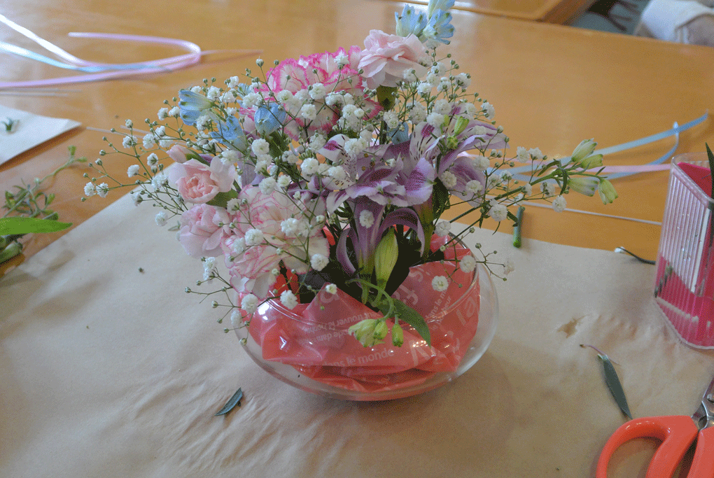 2015.08.20 シルバービレッジ日野 ~今月のフラワーアレンジメント~ 皆様に好評をいただいておりますフラワーアレンジメントです。 参加するご入居者のメンバーも増えてきました。 猛暑続きの中、夏にふさわしい清涼感あふれる作品を皆様、それぞれに先生の指示を受けながら楽しく作られておりました。 出来上がった作品は皆様のお部屋に飾らせていただいております。 writer 倉田 知章