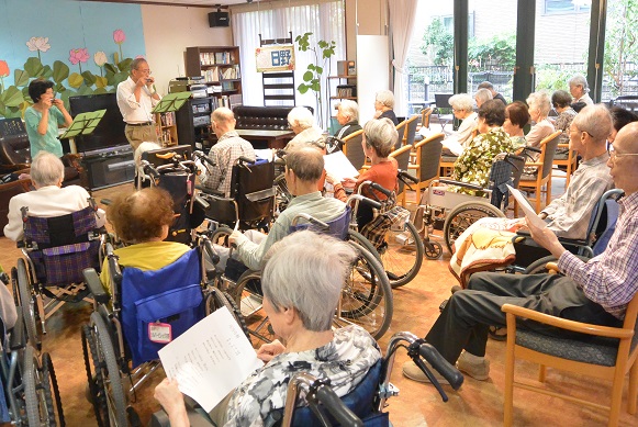 ホクホクしてきたところで、先生が奏でるハーモニカに合わせて「浜辺の歌」と「東京音頭」を合唱しました♪