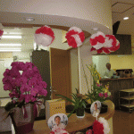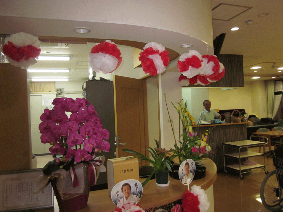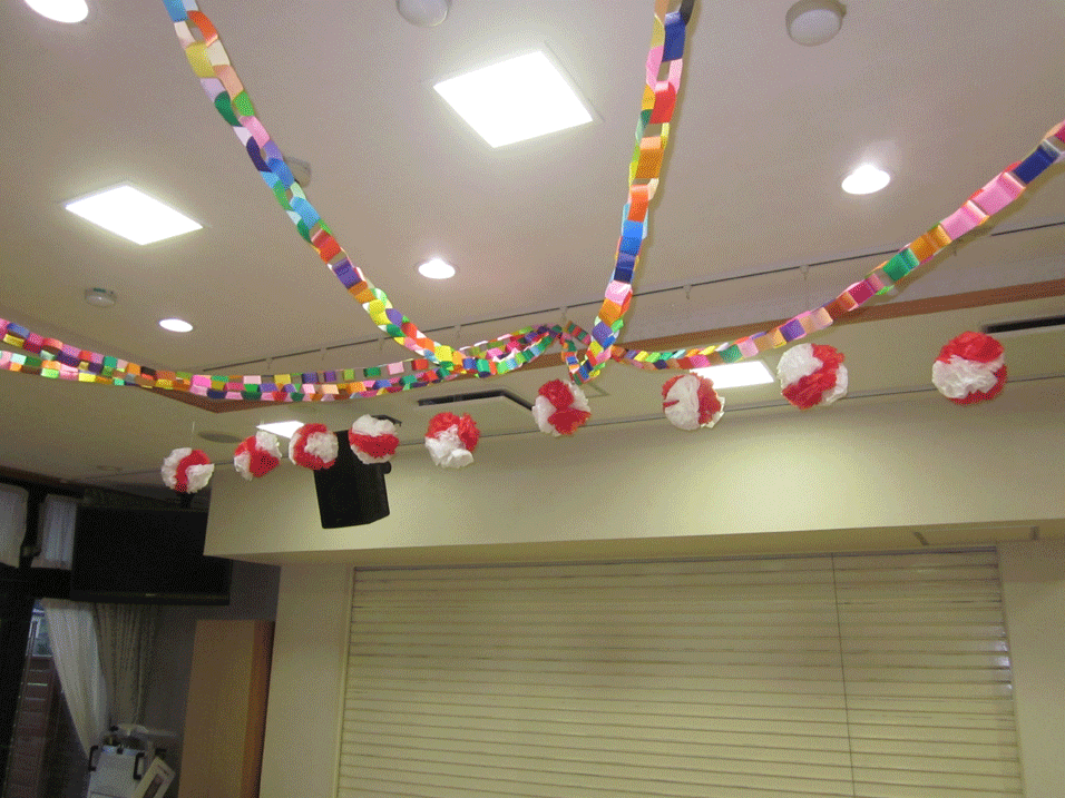 2015.09.11 シルバービレッジ八王子西 ~出番待ち~ 9月14日(月)に行われる「敬老会」をご入居者が作った作品たちが、1階ホールで1列に並んで出番を待っているように見えます。 writer 介護部 宍戸 房子