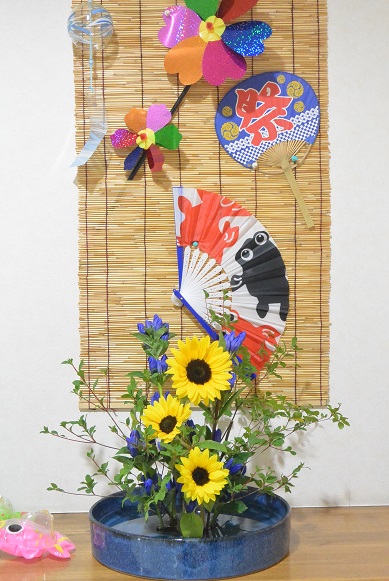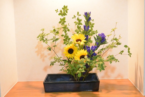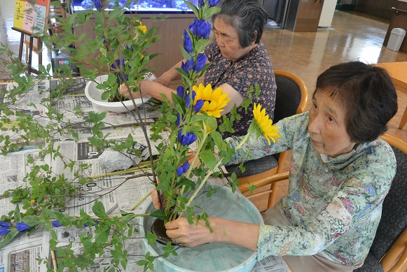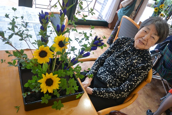 2015.09.02 シルバービレッジ日野 ~生け花教室~ 本日のレクリエーションは生け花教室です(#^.^#) お花は「向日葵」と「竜胆」です。 「向日葵」は夏の代表花、「竜胆」は秋の代表花と言われています。 8月から9月にかけて飾るには、ぴったりですよね!(^^)! 何名かの方は生け花を皆様に・・♪という事で、居室ではなく、館内に飾らせて頂いています(^O^) さらに明るく、華やかになりました☆ ありがとうございます(^v^) writer 介護部 松田