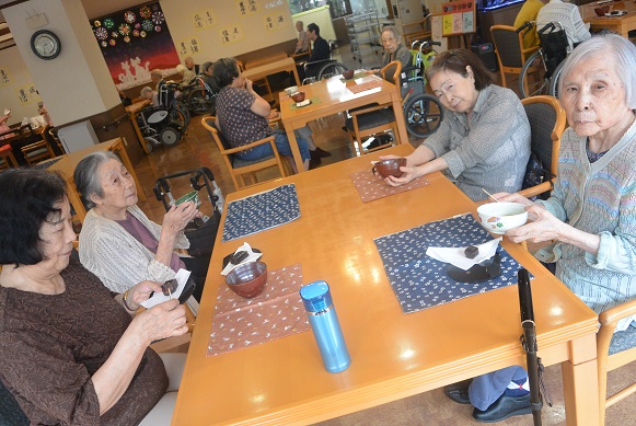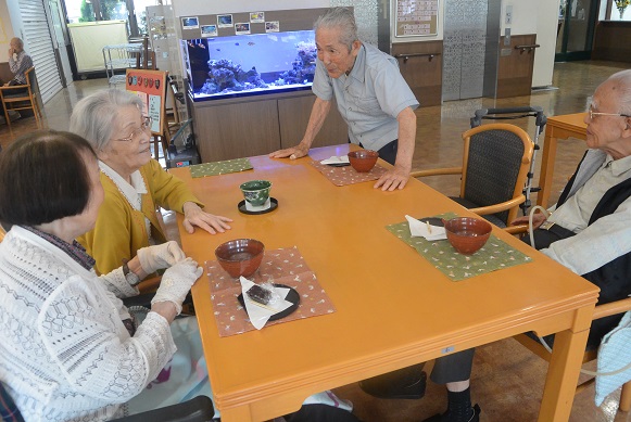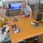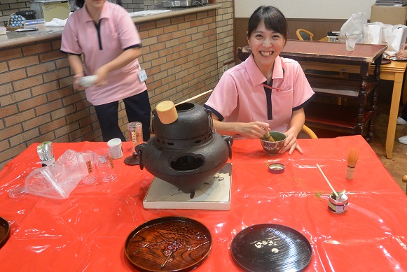 2015.09.02 シルバービレッジ日野 ~茶話会~ 本日のレクリエーションは、茶話会でした(#^.^#) お茶菓子の羊羹は“黒糖羊羹”と“本練羊羹”の2種類で皆様に選んで頂きます(^v^) ゆったりと琴のBGMを聴きながら職員が点てた抹茶と一緒に召し上がられておりました♪ writer 介護部 松田 恵里