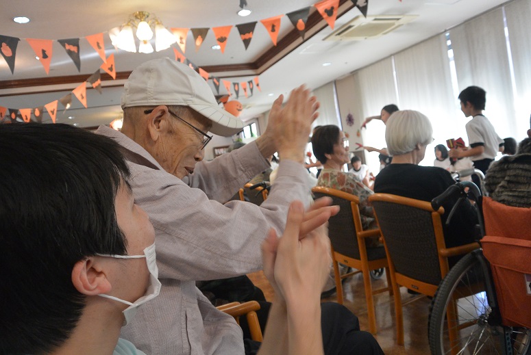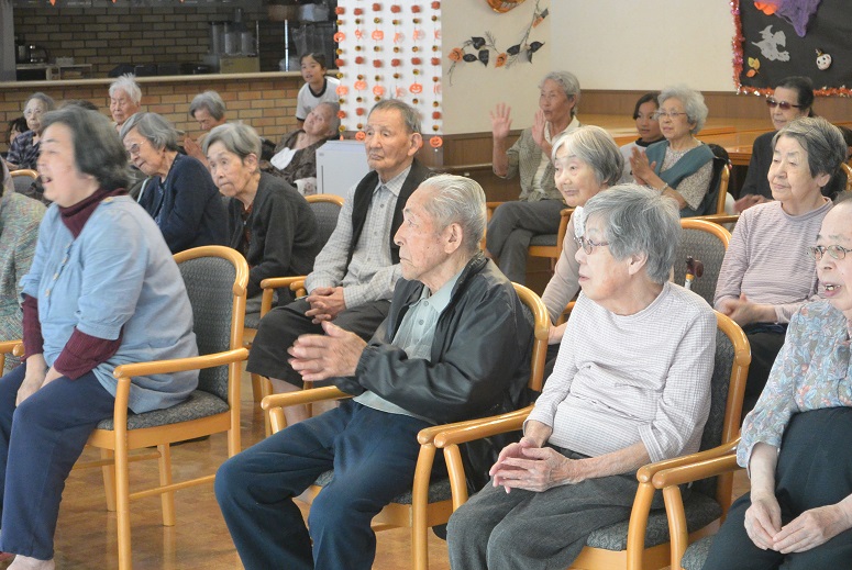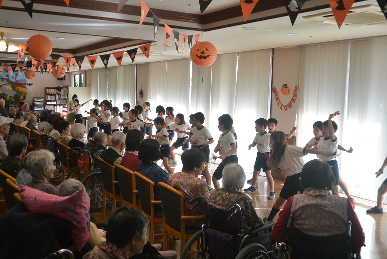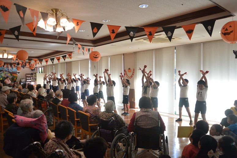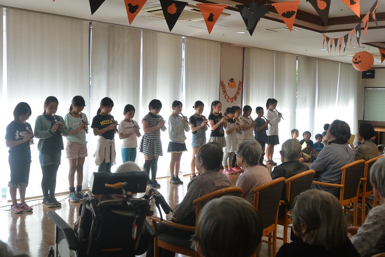 2015.10.19 シルバービレッジ日野 地域交流会 10月16日に、『地域交流会』があり日野第一小学校の4年生の児童の皆様が来てくださいました☆ 第1回目は、ご挨拶として合奏と踊りを披露して下さいました(#^.^#) リコーダーでは、「千と千尋の神隠し」の名曲を吹いて頂きました♪ 踊りでは、鳴子を使ったカッコイイダンスを披露して下さいました☆ ご入居者の皆様が一緒に笑顔で手拍子をしてらっしゃる姿は、本当に嬉しくて楽しい時間でした(#^.^#) writer 介護課 松田 恵里