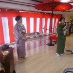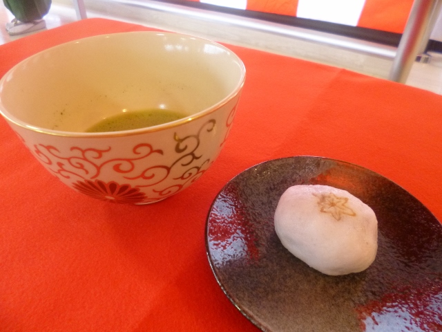 しかし、八王子6階ラウンジは窓から外の見晴も良く、野点傘・紅白幕・琴の曲で雰囲気バッチリの中で先生に点てて頂いた美味しいお抹茶と、上用饅頭を堪能して頂くことができました(#^.^#)