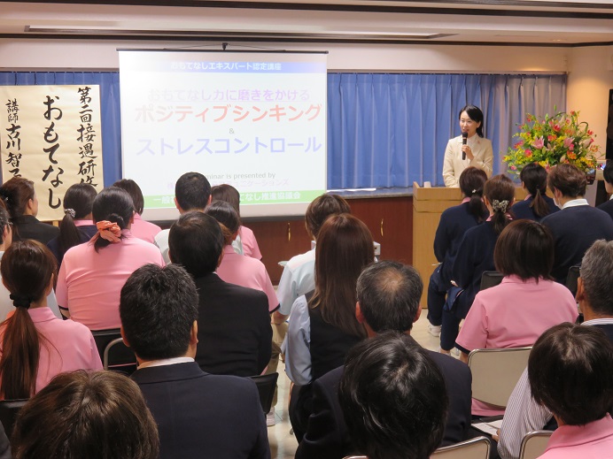 八王子の施設で古川智子先生を講師に迎え「おもてなしセミナー」の研修を行いました(^_^)