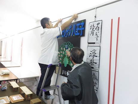 「昔若者、ふれあい作品展」のブースの準備をしました。