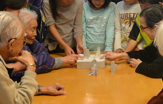 2015.12.08 シルバービレッジ日野 地域交流会~4回目~ 先日、4回目の地域交流会を行いました! 今回は、福笑いや釣り、紙相撲やミニボーリング。 他にも色々な手作りのものを持ってきて下さいました★ 中には、指相撲を行っているグループがありました! ご入居者が「久しぶりに頑張っちゃったわ」と笑顔でお話しされ、楽しい会となりました(#^.^#) writer 介護課 松田