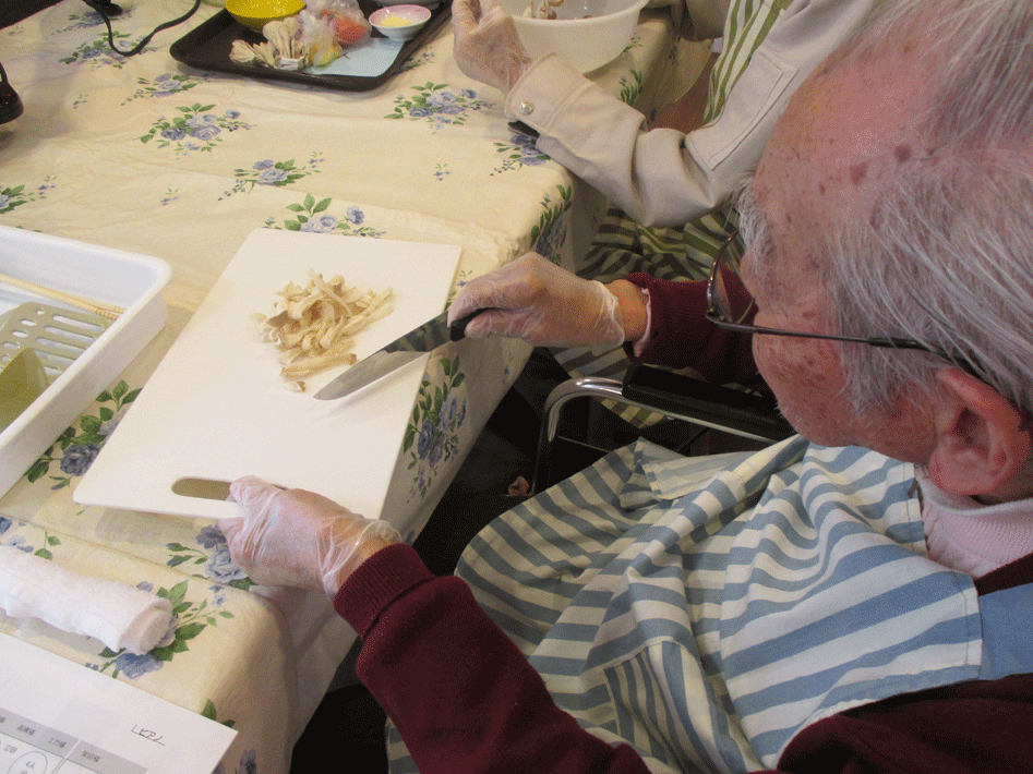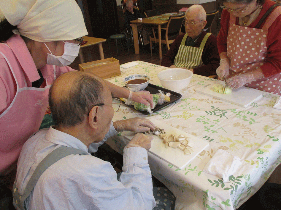 2015.12.08 シルバービレッジ日野東館 料理教室 今月の料理教室は「キノコのハッシュドビーフ」を作りました。 きのこがたっぷり入ったアツアツのシチューです。 毎回料理教室を行うと男性入居者が率先して頑張っています。 writer 介護課 大町 和子