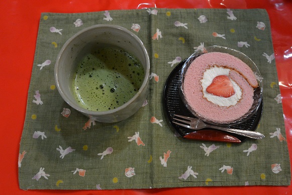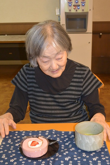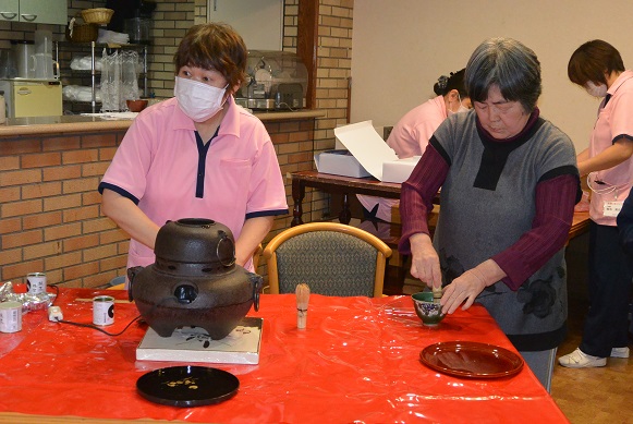 ご入居者と一緒にお茶を点てて、今が旬のイチゴのデザートをご一緒に★