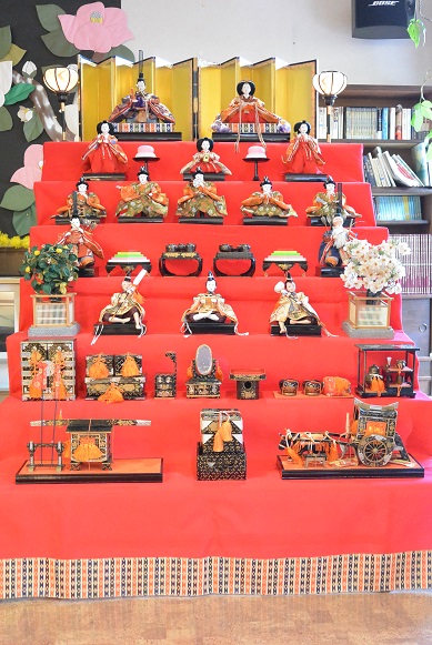 1階ホールに雛人形を飾りました(*^^*)
