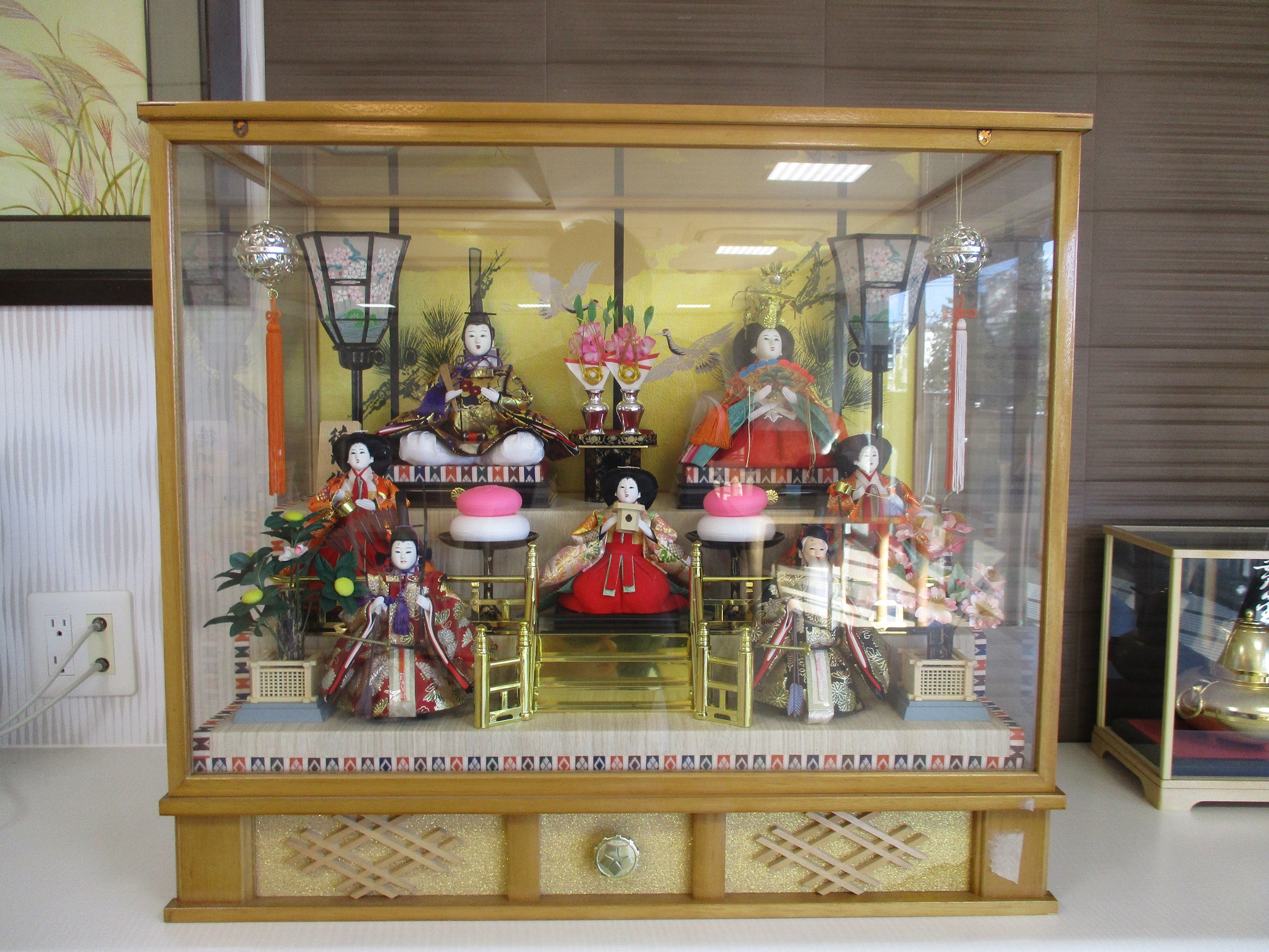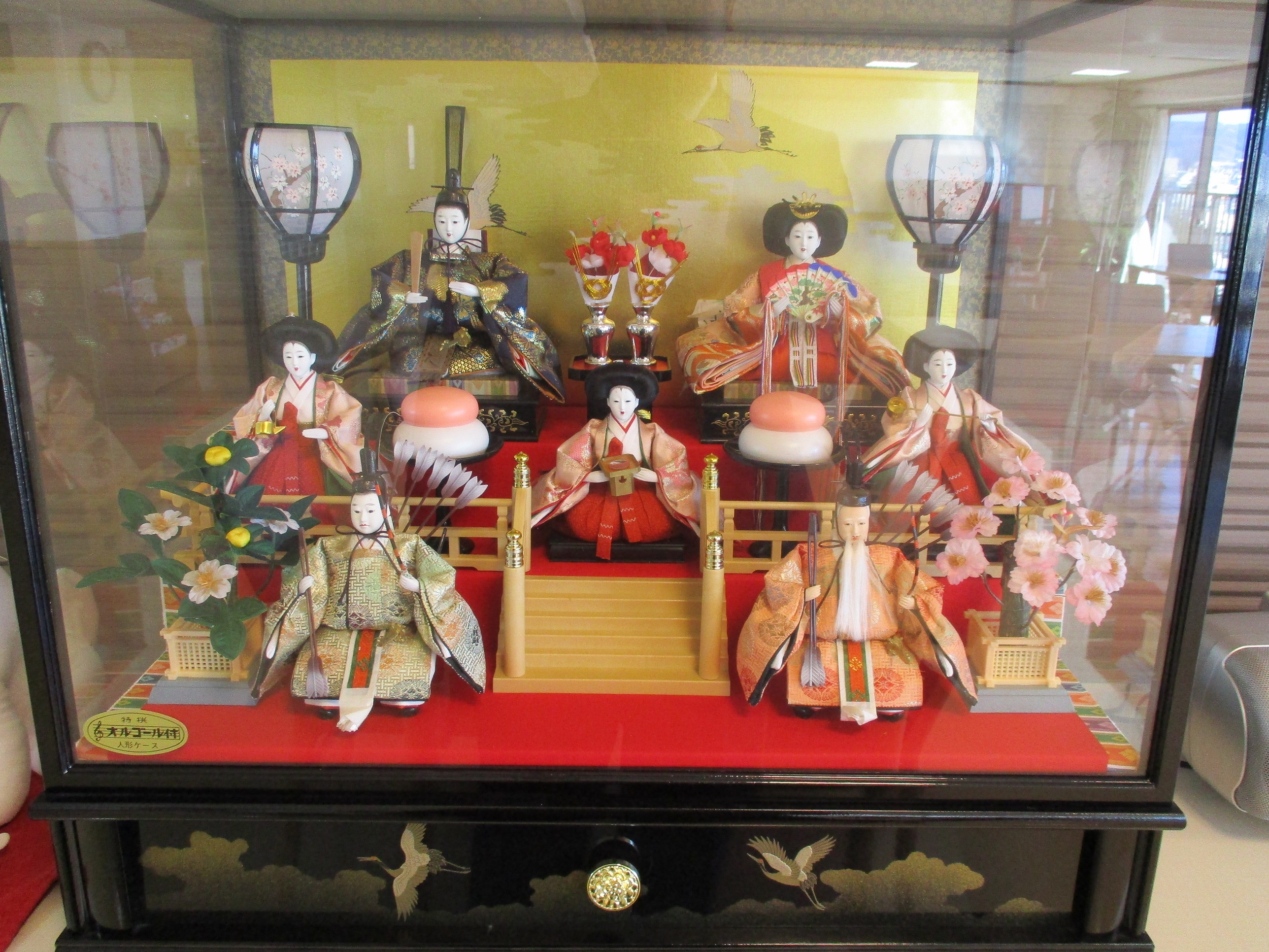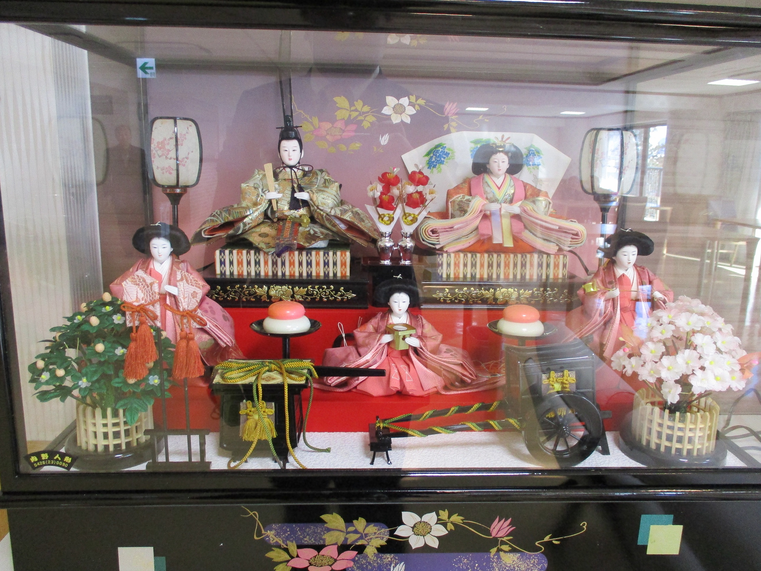 ひな祭りに向けて、各階にひな人形を飾っております☆